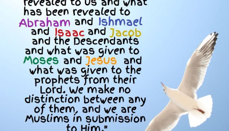 “Say, ‘We believe in God and in what was sent down to us and what was sent down to Abraham, Ishmael, Isaac, Jacob, and the Tribes, and what was given to Moses, Jesus, and all the prophets by their Lord. We make no distinction between any of them, and we devote ourselves to Him.’” (Quran, 2:136)